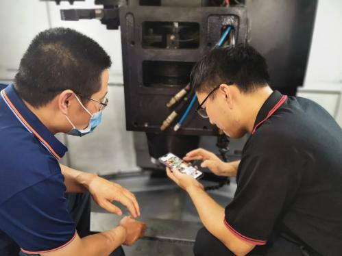 部分同学编入机加工班组,跟随企业带教师傅在数控车床、数控铣床上完成工件的粗、精加工,整个生产过程中培养、提高了同学们的操作技能。