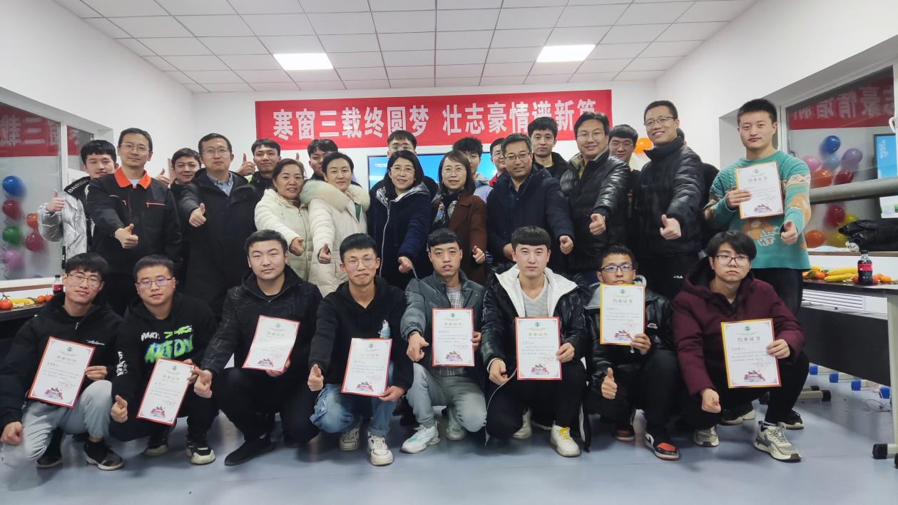 最后,张彩芬副经理希望同学们牢记自己肩负的责任,带着公司的嘱托,勇敢地展翅高飞!并祝福大家通过自己不懈的努力,奋力拼搏出一个无悔的青春,奋力拼搏出一个精彩的人生!创新班全体同学和领导、老师合影留念,一同欢笑,彼此祝愿,留下这冬季最美好的记忆。