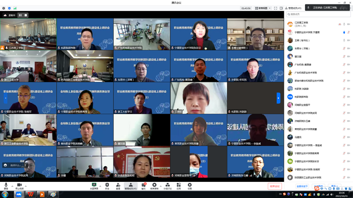 2022年10月31日,按照教育部教师工作司部署要求,公司机电一体化技术专业教师教学创新团队参加了第二批国家级职业教育教师教学创新团队—高端装备制造领域机电一体化技术专业协作共同体团队建设情况线上调研会。参会人员主要有教育部教师工作司项目秘书处副研究员王辉、国家教师培训基地浙江工业大学杜学文经理和十二家协作共同体成员单位团队成员。
