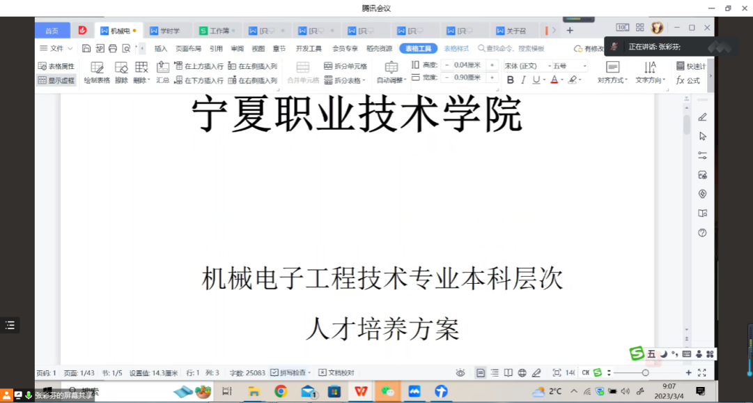 2023年3月4日,3377体育在线上召开了本科层次职业教育机械电子工程技术专业人才培养方案研讨会。机械工程学会张光荣理事长、小牛自动化雍刚总经理、宁夏恒益达机械有限公司徐建华总经理、宁夏大学机械工程公司张波经理,3377体育李慧云经理、张彩芬副经理、杨富平副经理以及机械、电气、数控三位教研室主任及相关骨干教师参加了本次会议。会议由张彩芬副经理主持。