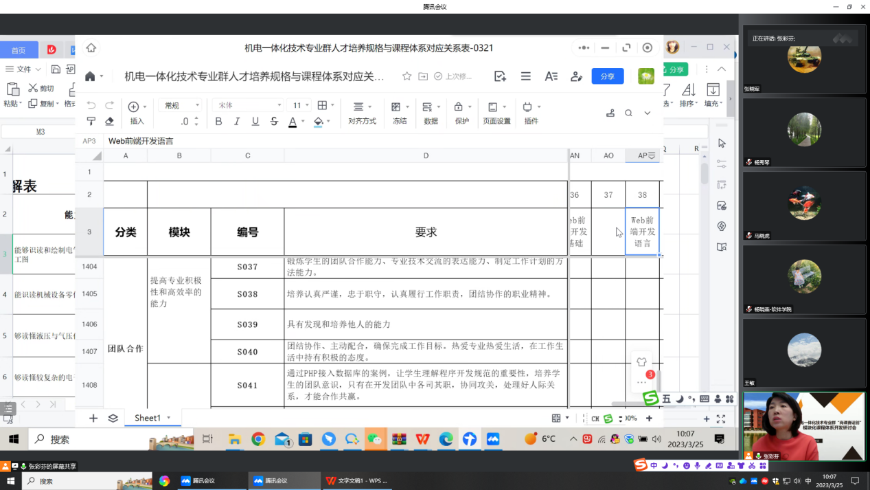 2023年3月25日,机电一体化技术专业群在线上召开了专业群课程体系开发研讨会,这是继2022年12月份以来第十次召开课程体系开发研讨会。凌旭东副经理、张彩芬副经理、张凤霞副经理、刘艳副经理、各教研室主任及专业群骨干教师参加了会议。